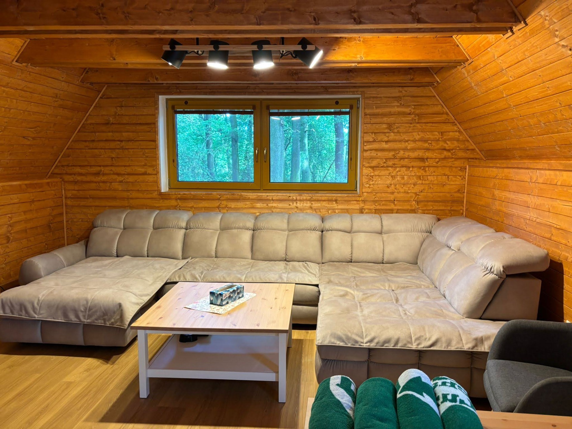 Pokoje jsou menšího rozměru, ale dostatečně veliké na pohodlné přespání. Chata má 3ložnice, 2x dvoulůžko a 1x čtyřlůžko, skříňku a lampičku. Ložnice jsou v podkroví a přístup je z 1.patra po schodech. Obývací pokoj disponuje rozkládacím gaučem pohodlným pro přespání pro 2 osoby. Obývák je dostatečně prostorný pro8 osob s přístupem do kuchyňky a koupelny. Je zde denní světlo s možností zatemnění na noc. Celém patře je přístup na východní i západní terasu.